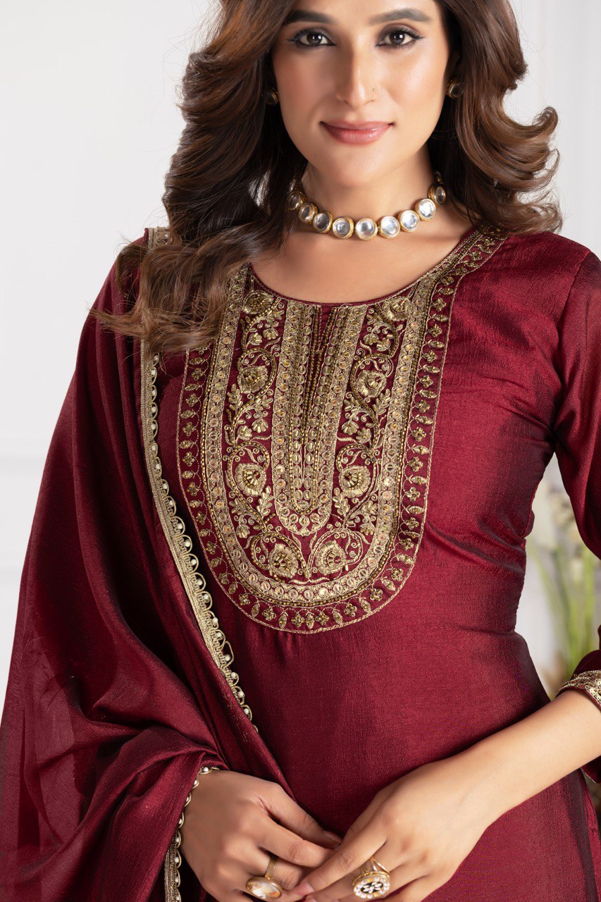 Copper Thread Work Straight kurta With Trousers & Duppata